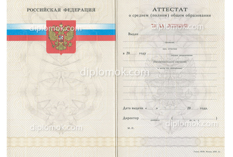 Купить аттестат за 11 класс 2007-2009 годов на Гознаке