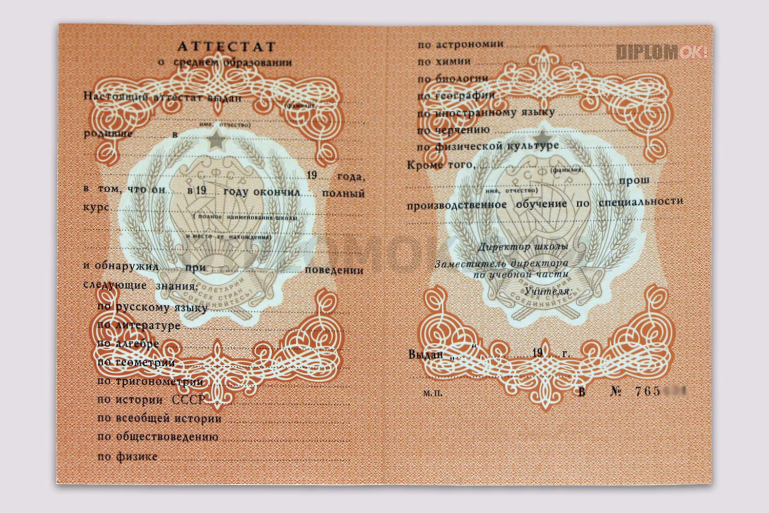Купить аттестат за 11 или 10 класс СССР до 1994 года на Гознаке